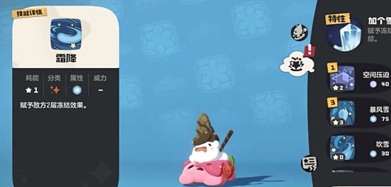 该阵容以圣代甜甜和冰钻布鲁斯为核心,搭配霜天形成强力控场链。圣代甜甜先手使用技能施加冰冻效果,并通过“加个雪球”叠加至三层以上,实现单回合冻结目标。随后切换霜天,进一步提升对手的能耗值。当敌方处于冻结状态无法行动时,换上冰钻布鲁斯,利用其特性触发龙之舞强化,同时通过贪婪吸血维持自身血量,逐步建立优势,最终完成收割。