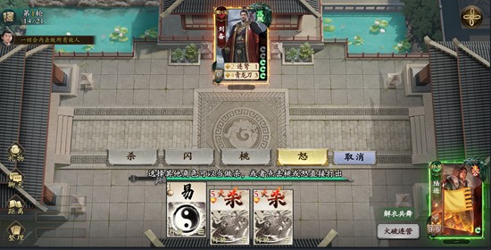 第26关的核心在于理解胡笳十八拍的触发机制。玩家需要在面对曹操时主动使用阵前对决并选择放弃战斗,使自身进入失血状态,借此激活胡笳十八拍的效果。该技能可弃置曹操手中持有的桃,削弱其回复能力。随后,当曹操出杀攻击时,玩家便可抓住机会进行反制,利用技能反打完成击杀。此关的关键在于“以退为进”的策略思维,合理利用掉血来换取后续的输出优势,是名将杀中典型的反向操作技巧。