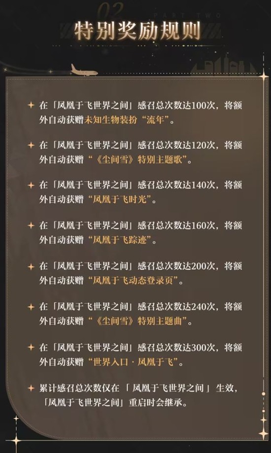 感召总次数达300次,将额外自动获赠“世界入口·凤凰于飞”。