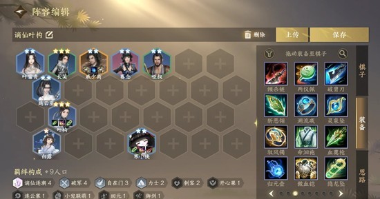 自在门有破军刺客羁绊加成时推荐,利用谪仙跳后排机制,让叶构去秒对面后排,同时长笑也有几率穿到后排。最好是嫖到有三张以上叶构在去玩。3-1追出三星叶构开3自在门加3破军2谪仙。长笑随缘三星,然后攒钱快速升9,开出5破军带寒小侠和戚少商。上限在于快速上9以及二星戚少商,吃鸡需要看叶构发挥秒掉对面后排核心C位。