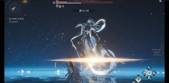 ①尾巴劈下来。劈之前会喊一句,“月华xx”,注意这句话的时机,提醒你可以准备卸势了。也会有光,但我这里有bug,看不清具体什么颜色,只显示一个炫彩方框。