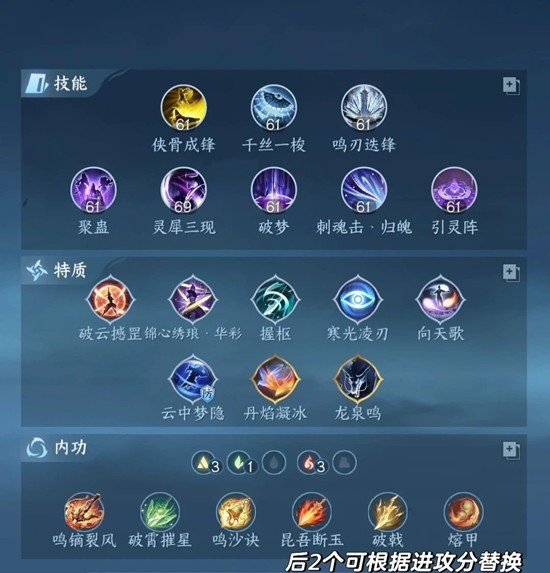 2.汲川已经被鸣沙决替代了,佩戴破宵的情况下不推荐再上汲川,3个会心会伤内功收益低;如果你的破宵已经被优化了,可以考虑汲川、鸣沙决一起带。