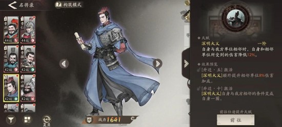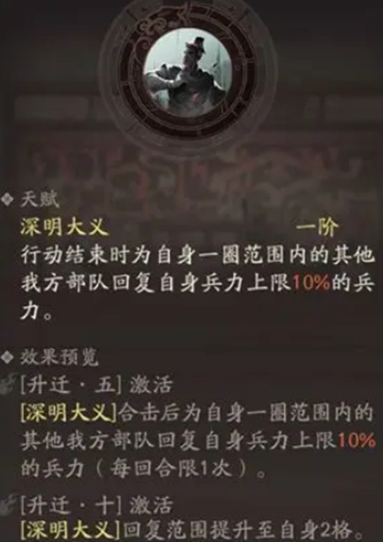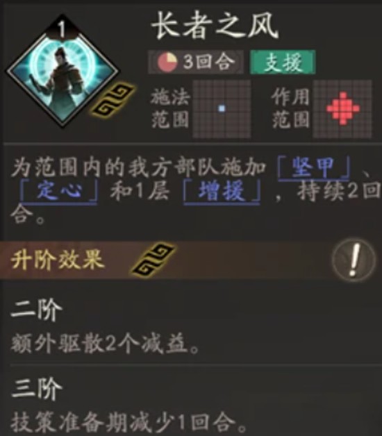 这是李典最关键的被动技能,也是其强度的核心来源。该技能可为自己提供15%的防御加成,同时为全队附加10%的减伤效果。随着历练等级提升,该减伤比例最高可达25%,相当于为每位队友套上一层稳定的护盾。在实战中,这一效果能显著降低敌方输出对团队的威胁,尤其是在持久战中优势更加明显。因此,在技能培养时,持重少守御必须优先点满。