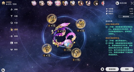 在配队方面,昔涟最契合的搭档包括遐蝶、长夜月和风瑾,这些角色能与她的充能机制形成良好联动。白厄、星期日、丹恒·饮月等角色也能较好融入她的体系。若昔涟达到二命,则在非黄金裔队伍中也能快速启动大招,具备更强的泛用性,可胜任多数主流队伍的辅助位。遗器推荐救世主四件套搭配翁法罗斯两件套,主词条选择爆伤衣、速度鞋、生命或冰伤球、生命百分比链,副词条优先堆叠速度,目标将速度提升至180,以确保被动完全生效,其次补充生命百分比与爆伤属性。光锥首选其专属,次选模拟宇宙记忆套装。