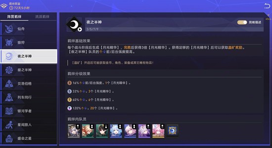 夜之半神羁绊的运作方式类似于资源积累型玩法,玩家在每轮胜利后会根据当前羁绊等级获得月光精华,当精华积满后即可领取包含角色、装备和货币在内的丰厚奖励。这一机制让夜之半神成为长期对局中的经济优势来源。由于具备该羁绊的角色中不少也属于燃血体系,因此常与燃血羁绊联动使用,例如7夜之半神4燃血的搭配,既能保证生存又能持续获取资源,在中后期形成滚雪球效应。