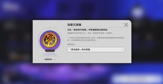 崩坏星穹铁道深度沉浸器的获取主要依赖于货币战争玩法。该模式每两周重置一次积分周期,玩家在参与过程中累积足够积分后,可在奖励阶段领取深度沉浸器,每次重置最多可获得4个。此外,货币战争的等级奖励路线中也包含一定数量的深度沉浸器作为阶段性奖励。该道具无使用期限限制,可长期持有,但每位玩家最多只能持有12个,达到上限后将无法继续获取,建议及时使用以避免浪费。