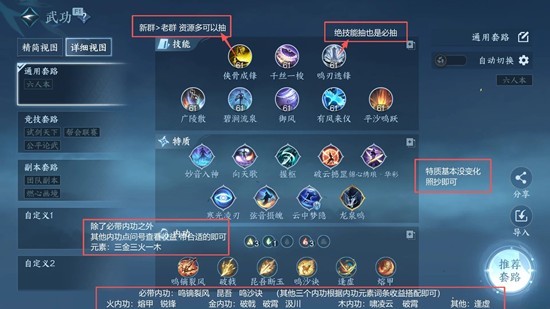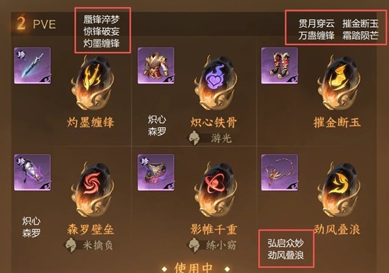 必带内功:鸣沙诀 鸣镝裂风 昆吾 (其他三个内功根据内功元素词条收益搭配即可)