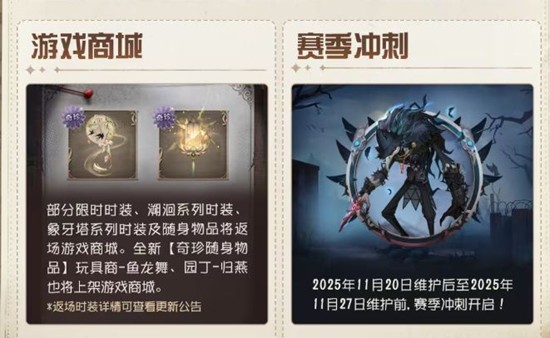 2025年11月20日维护后至2025年11月27日维护前,赛季冲刺开启。