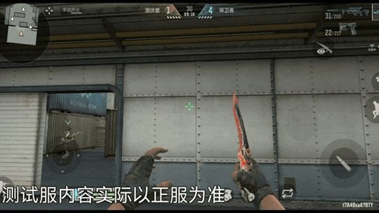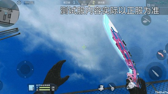 近战武器外观上比较独特的地方在于:刀刃在不断变幻颜色,个性的特效设计将海水流动的形态完全体现了出来,和副武器一样的鱼眼设计彰显了整套皮肤卓越的完整性。