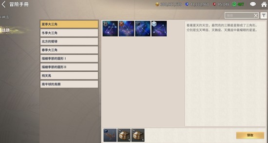 冒险手册中的星座图鉴为大航海时代起源增添了浓厚的天文探索色彩。玩家需先获得星座线索道具,并确保天文观测等级达到要求。当船只航行至对应纬度的海域,在夜晚抬头观测星空即可触发迷你小游戏。成功完成星座连线挑战后,该星座图鉴将被解锁,同时解锁一段背景故事并获得奖励。由于星座出现受地理位置限制,定期查看天文日志并调整航线有助于不错过任何一次观测机会。