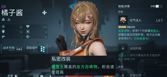 前排生存位可选用凯蒂或金吉作为过渡角色,尤其适合在前期资源有限的情况下使用。凯蒂能提供范围护盾,有效保护脆皮召唤物;金吉则具备单体双爆破能力,同时可施加减伤与反伤效果,并能降低敌方攻击力。若追求更高生存保障,橘子酱也是不错的选择,她在能量积满后可部署摄像头,释放范围护盾,且最多可携带5个初始能量(共200点),大幅提升队伍容错率。