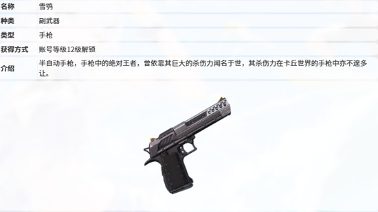 雪鸮手枪是许多高阶玩家在卡拉彼丘中青睐的副武器之一。其单发贴脸伤害高达42点,爆头可达到102点的恐怖数值,具备一枪翻盘的能力。该武器不仅适用于近战,中远距离精准射击也能打出可观输出。不过,雪鸮手枪对使用者的瞄准精度要求极高,若未能命中要害,容错率较低。因此更适合枪法稳定、擅长控枪的玩家使用。在爆破模式或残局对峙中,这把武器往往能成为决定胜负的关键。