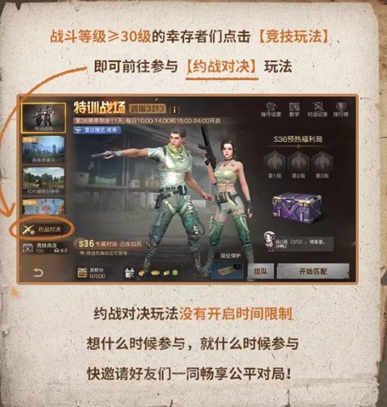 战斗等级≥30级的玩家可以通过点击【竞技玩法】参与【约战对决】玩法。