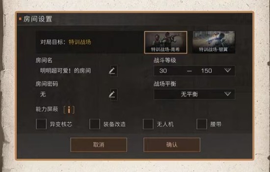玩家可以自定义房间设置,包括战斗等级、战场平衡、能力屏蔽等,以适应不同的战术需求。