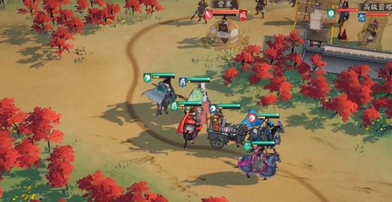 战斗开始首回合,优先派遣张辽使用穿透冲锋技能,直击西侧臧霸营寨后方,打乱敌方阵型。同时关羽、张飞率领骑兵迅速前压,形成前后夹击之势。张飞需配备背摔技能,在后续回合中用于控制敌方守门单位。曹操在此阶段释放短歌行进行远程压制,配合刘备的刀剑生辉与张辽合力攻破营寨。此套连招能在第一回合就清除西侧外围防御,为后续推进创造有利条件。