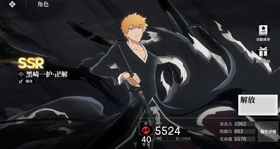 卍解一护是开服时期的限定角色,拥有极强的站场输出能力。他的攻击动作流畅,斩击特效华丽,操作手感出色,适合长时间在前台作战。作为主力输出角色,他依赖持续普攻与技能连段打出高额伤害。卍解后整体攻击力大幅提升,无论是前期开荒还是后期挑战高难度内容都具备很强的适应性。配合能提供后台支援的角色时,输出效率将进一步提升。