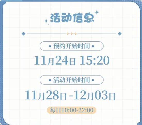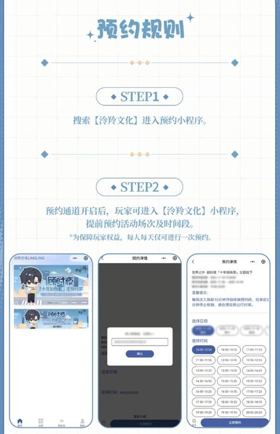 预约方式:预约界面将在11月24日15:20准时上线【泠羚文化】小程序。玩家可提前进入小程序完成注册,待预约时间后进入相关活动页进行预约。