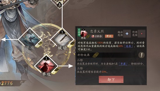 在技能搭配方面,前期建议配置横刀跃马与突进两个技能。横刀跃马具备范围伤害和位移效果,能帮助夏侯惇快速切入战场核心区域;突进则进一步强化机动性,配合被动反击机制,可在敌阵中打出连续压制。进入游戏后期,忠勇义烈与力战成为更优选择。忠勇义烈适合收割残血目标,尤其在队伍已有主力输出的情况下,能完美衔接输出链完成击杀;力战则提供攻击与防御双重加成,增强夏侯惇的攻防一体表现。