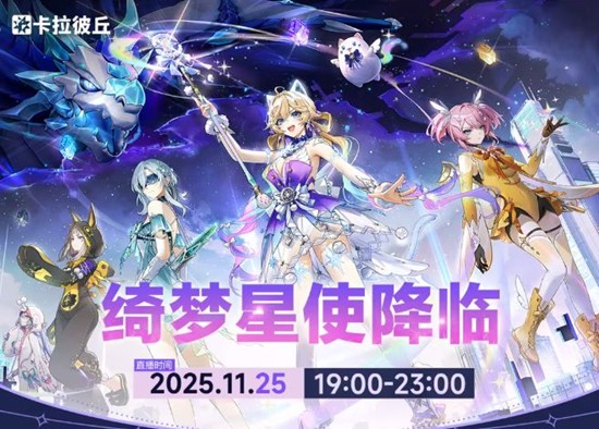 卡拉彼丘即将在2025年11月25日19:00至23:00举办一场名为“绮梦星使降临”的特别直播活动。本次活动将为玩家们带来一系列限时福利和惊喜,包括人气礼包返场、限时暴击礼包、满赠活动等,让玩家们在享受游戏的同时,也能获得丰厚的奖励。