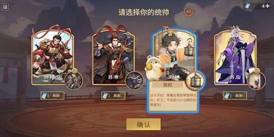 完成新手引导后,玩家即可参与八人实时对战。每局开始前,系统会提供四位统帅角色供玩家选择,每位统帅都拥有独特的统帅技能。新手玩家建议优先选择曹操、刘备这类机制简单、适配性强的统帅,这样能更快熟悉千机阵的游戏节奏。