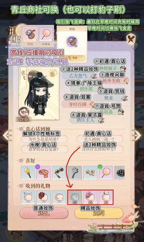 注:吸引张飞的〖赏钱〗可以在商店兑换!