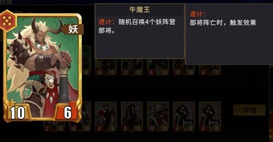 该阵容以石矶、牛魔王和铁扇公主为核心。牛魔王负责召唤妖族部将,铁扇公主在妖族阵亡时为全体妖族增加攻击,石矶则为牛魔王提供不屈效果,确保场上始终有召唤单位存在。这种搭配能够快速叠加攻击力,显著提升队伍的整体作战能力。