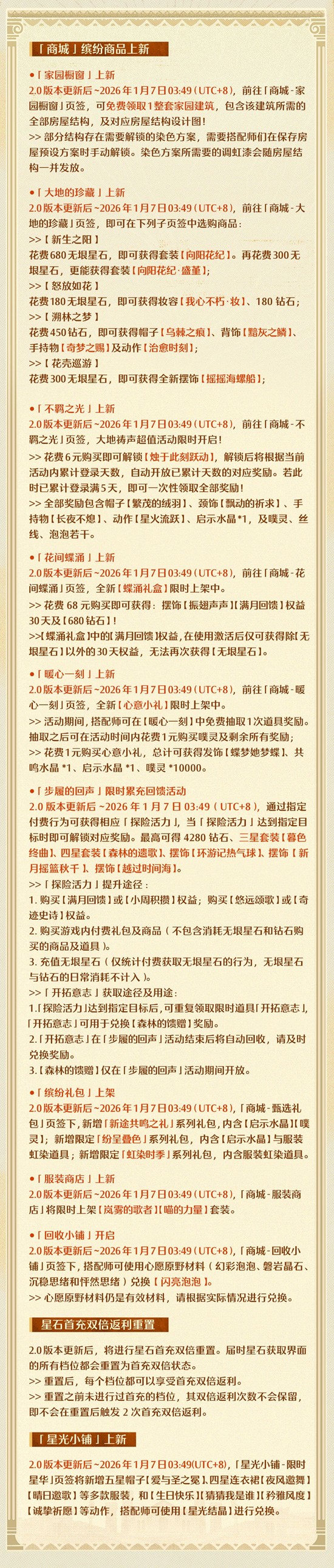 2.0版本更新后至2026年1月7日03:49(UTC+8),将开启多项限时收集活动:「大地的灵感」鼓励玩家收集伊赞之土的奇想星;「大地的足迹」则需激活流转之柱,赢取共鸣水晶和养成材料。