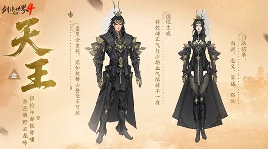 天王门派源自洞庭义军,整体设定带有浓厚的军旅色彩。门派成员无论男女皆身穿黑金甲胄,腰系龙扣,形象威武霸气。其武器造型多以枪盾为主,体现出军队出身的厚重感与纪律性。这种视觉与机制的双重统一,让天王在剑侠世界4无限的世界观中显得尤为突出。结合双兵器切换系统,天王不仅在外观上独具一格,在实战中也展现出多样化的战斗可能性。