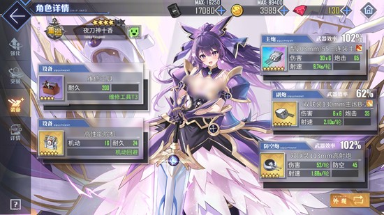 装备鏖杀公后,夜刀神十香将永久获得8%伤害减免,并在每次击败敌舰后叠加8%暴击率,最多三层,效果可持续至战斗结束。武器配置方面,推荐使用彩重巡炮、欧根炮或巴尔的摩炮作为主炮,副炮选择B13或金128,防空炮优先金113。设备栏推荐金舵机+维修工具组合,兼顾机动性与续航能力,适用于大多数推图与活动场景。