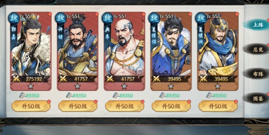 夏侯渊与夏侯惇的加入进一步强化了这套百战群英魏国队的控制覆盖与战术灵活性。夏侯渊作为远程弓兵,技能可对群体敌人造成伤害并附加“寒冰”状态,特别适合应对集结单位。夏侯惇则是骑兵突击型武将,其技能锁定敌方最强目标进行打击,并附加“寒冰”效果,同时提升自身伤害。两位夏侯氏武将的协同作战,使整支百战群英魏国队在攻防两端都更加均衡。