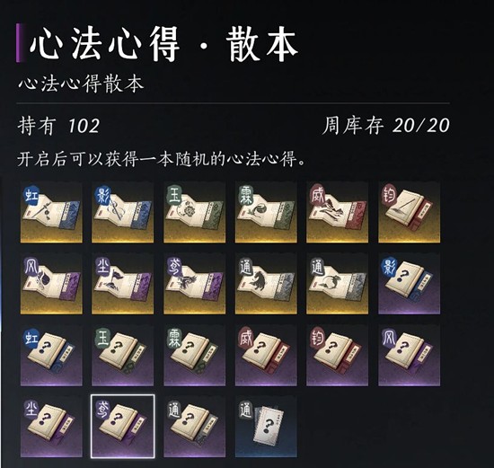 每周的兑换上限为40个心法宝箱,这些箱子内含心法散本,是提升心法等级的基础材料。此外,心法散本还可以通过参与日常活动、完成任务以及在特定NPC处购买获得。