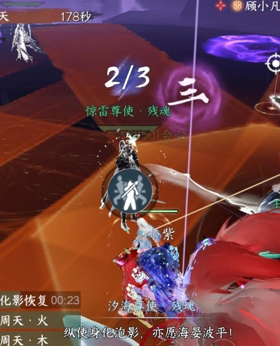 躲红圈,第二波红圈位置即紫圈位置,紫圈出现第一时间去碰,否则惊雷会释放绝技秒人。