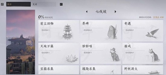 传送点后方小岛上有第一个箱子,旁边花用弓箭射击获得第二个箱子。渡河到对岸与猫和蝴蝶互动解锁两个箱子,左手边石头区域藏有两个箱子。返回岸边上桥朝村庄前进,激活花巢机关后使用探查功能找到村中所有隐藏探索玩法。