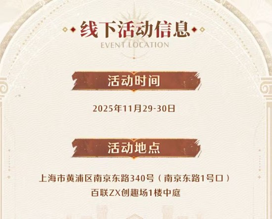 无限暖暖2.0【祷声起诸大地】主题线下活动即将在上海盛大开启,为玩家们带来一场视觉与互动的盛宴。本次活动由无限暖暖与创趣场联合举办,将于2025年11月29日至30日在上海市黄浦区南京东路340号(南京东路1号口)百联ZX创趣场1楼中庭举行。
