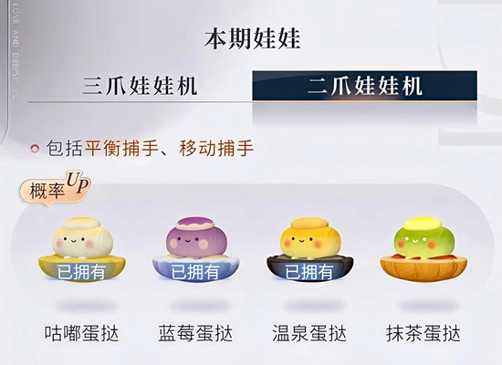 11月24日~12月7日,咕嘟蛋挞在二爪娃娃机的概率将会提升。