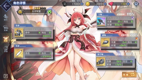 在装备搭配方面,五河琴里的配置与常规金战列基本一致。主炮优先选择彩炮,若暂无则可使用欧根炮、弗兰炮或紫MK6作为替代。防空炮推荐STAAG以提升对空覆盖率,副炮可装配泛用轻巡主炮以兼顾输出与命中。设备方面,若无调速需求,金火控搭配白弹是性价比极高的选择;若有特定炮速要求,则可通过黑弹、弹链等装备进行微调,确保输出节奏与队伍协同一致。