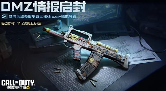 11月28日(本周五),DMZ:禁区的预告活动即将上线。玩家们完成指定任务,就能获得史诗级武器Groza-辐能导管。