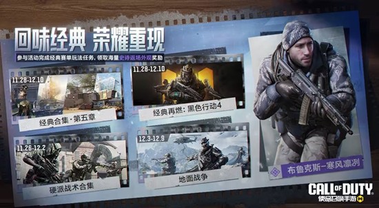 11月28日(本周五),2024怀旧地图合集也将重返战场,让玩家们回味经典。参与活动完成经典玩法任务,就能领取史诗级角色布鲁克斯-寒风凛冽等海量史诗返场外观奖励。