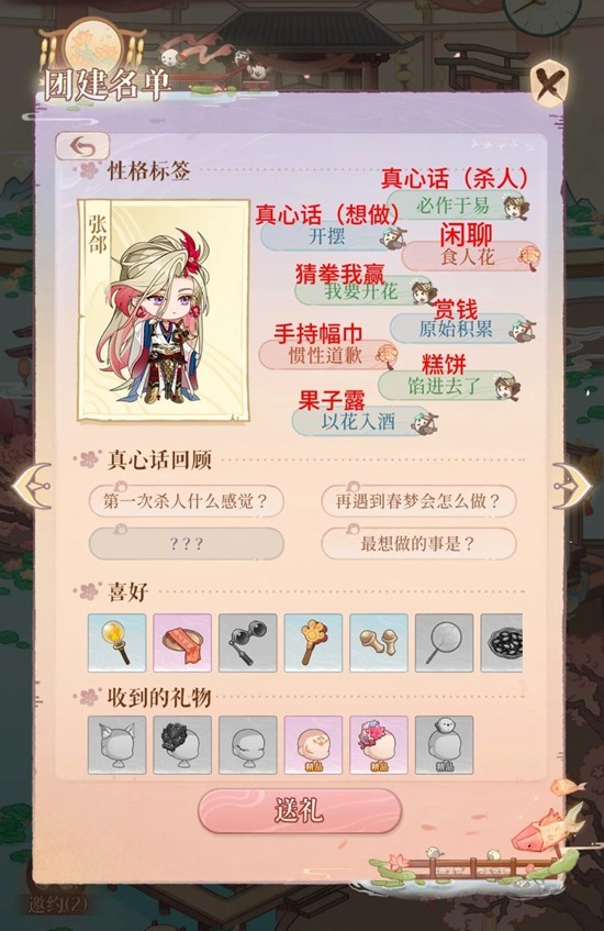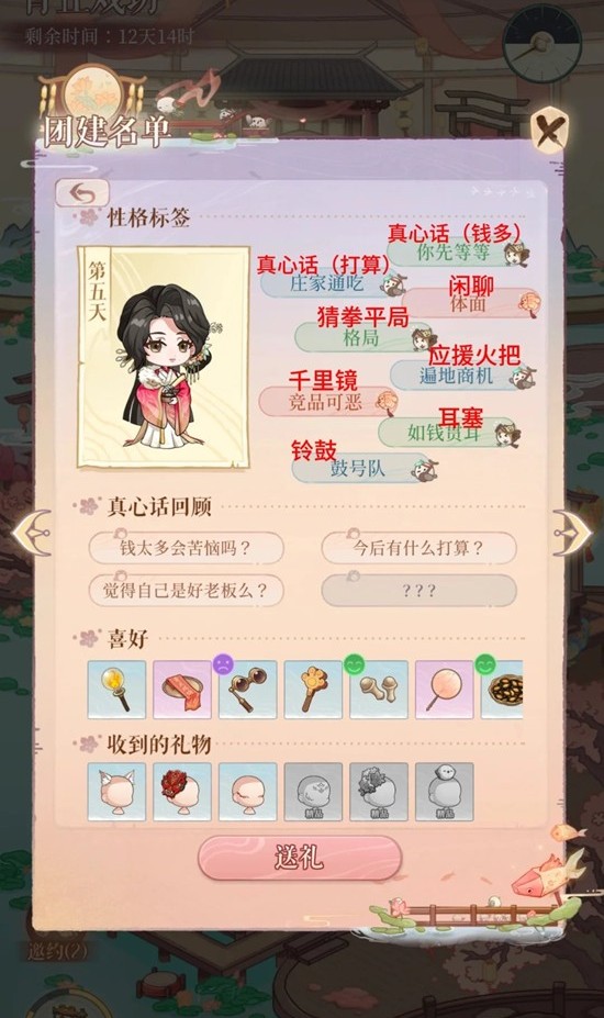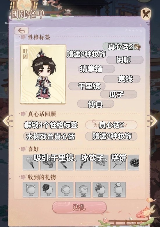 接受邀约后消耗12个时辰,密探就会离开。此时殿下需要在团建名单中找到该密探,点击邀约,既可重复开启水榭戏台。推荐解锁雀使,只用送一个普通装饰