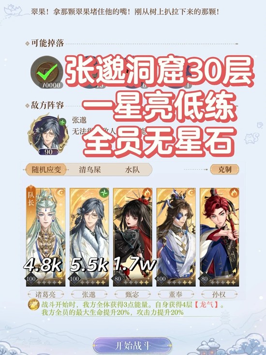 以上就是如鸢隆地冬张邈洞窟30层,无星石低练度配队攻略的全部内容了,更多游戏资讯,攻略内容敬请关注切游网,您的支持是我们努力的动力!