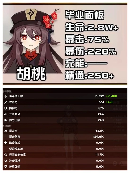 以上就是【原神】角色培养及解析攻略,角色胡桃毕业面板参考的全部内容了,更多游戏资讯,攻略内容敬请关注切游网,您的支持是我们努力的动力!