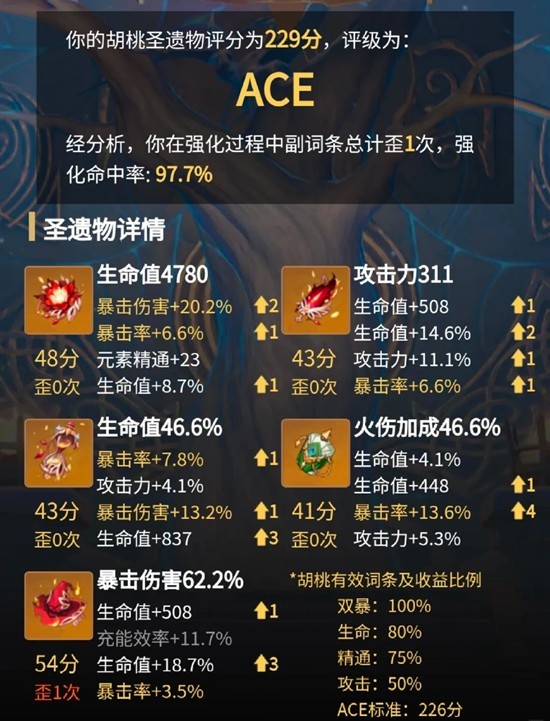 主词条顺序是生命-攻击-生命-火元素伤害-暴击伤害。