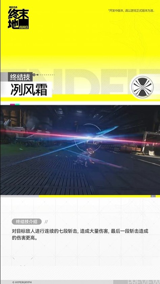 对目标敌人进行连续的七段斩击,遭成大量伤害,最后一段斩击遗成的伤害更高。
