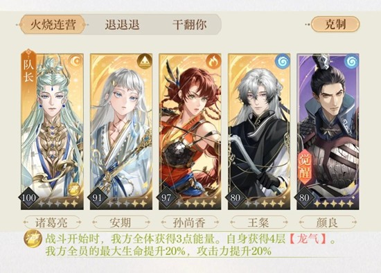 因为没有董奉,也没有水队,就还是选择用了安香和诸葛亮!