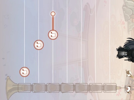 如果觉得竖屏不是很好操作,可以把屏幕顺时针转90°让唢呐那条线在最下面这样就和玩钢琴块差不多