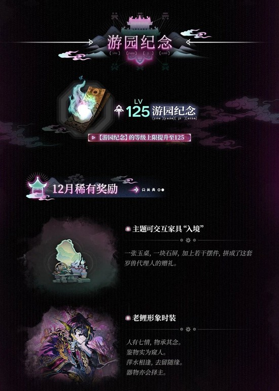 明日方舟「岁的界园志异」十二月更新内容前瞻来啦~【游园纪念】的等级上限提升至125。【本月委托栏】将会覆盖更新一批委托。委托更新后,上月的委托进度将不会被继承。您将获得可在本月使用的四次刷新未完成委托的机会。点击刷新后,即可重新获得同等级的委托。一起来和小编看看吧~