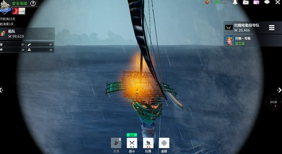 在战斗中,你可以选择多种攻击方式,包括远程炮击、近距离白刃战、舰体冲撞以及船长之间的决斗。每种方式都有其适用场景,炮击适合保持距离消耗敌人,白刃战则在贴身时造成高额伤害。若两艘己方船只分别位于敌舰两侧,还能触发夹击机制,大幅提升伤害输出。当敌舰耐久归零、全员阵亡或决斗失败时,该船即宣告沉没。