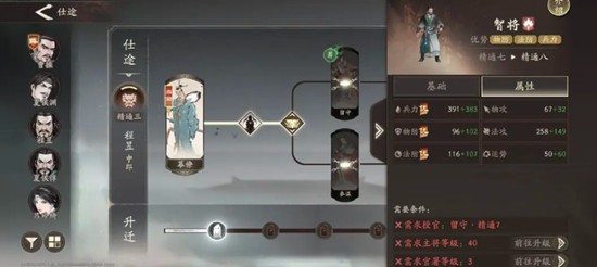在职业进阶路径方面,程昱提供两条发展方向。选择走上路可使其更偏向近战承伤型法师,提升生存能力的同时保持一定的控制输出;若选择下路,则侧重于法术强度成长,牺牲防御换取更高的技能伤害。由于程昱本身不具备高额爆发输出,但拥有丰富的负面状态施加手段,因此走上路更能发挥其战场搅局者的作用,保证在前线存活并持续干扰敌方阵型。