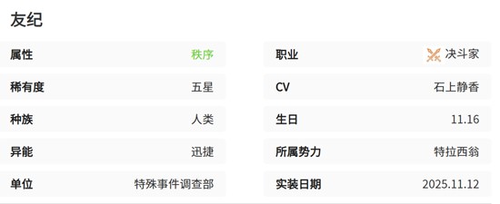 综合来看,卡厄思梦境友纪值得抽。她在副本刷图、Boss攻坚和高难度挑战中均有出色表现,兼具输出、控制与一定生存能力。对于希望提升队伍远程火力和战斗策略多样性的玩家来说,友纪是一个可靠的主C选择。以上就是卡厄思梦境友纪阵容强度详情分析一览,希望切游小编带来的这篇卡厄思梦境友纪攻略对你有帮助。