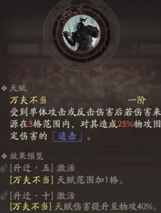 管亥适合在前期过渡阶段作为典韦的副将使用。他的技能特点是在典韦释放主动技能后,为其增加一格移动范围,这对于移动力为6格的骑兵单位来说,能够在特定地形中获得额外机动优势。尽管该效果增益有限且后期作用减弱,但在开荒时期仍有一定战略价值。需要注意的是,管亥不具备追击伤害加成能力,因此仅建议在未获取核心副将前临时使用。